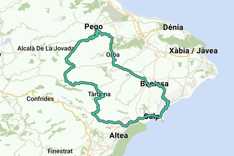 La route commence dans le ensoleillé Calpe, un village de cyclistes populaire sur la Costa Blanca. Connue pour l'imposant Peñón de Ifach, Calpe offre un magnifique départ en bord de mer, avant de pénétrer dans l'intérieur des terres pour un parcours exigeant à travers des terrains montagneux. L'itinéraire combine des villages pittoresques, de bonnes montées, et des vues à couper le souffle.