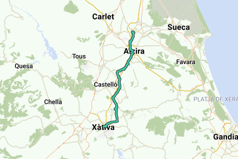 <p><a class="routeYou_embed" href="https://app.routeyou.com/fr-es/route/view/18114417?utm_source=embed&utm_medium=article&utm_campaign=routeshare&navigation=external" title="GR-239. Étape 02. Algemesí-Xàtiva - RouteYou" target="_blank"><img src="https://image.routeyou.com/embed/route/960x670/18114417-fr@2x.png" style="width: 100%; height: auto;" alt="GR-239. Étape 02. Algemesí-Xàtiva"></a></p>