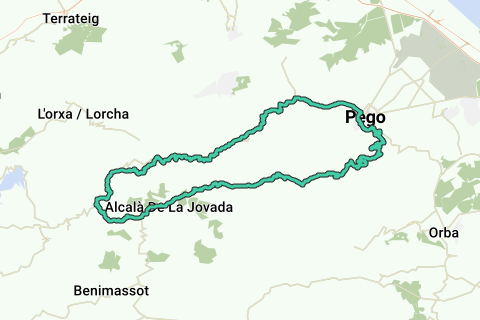De Pego à travers la vallée de l'Ebo, retour à Pego. Avec une montée de 8 km puis une descente vers Vall d'Ebo, magnifique avec de superbes vues.