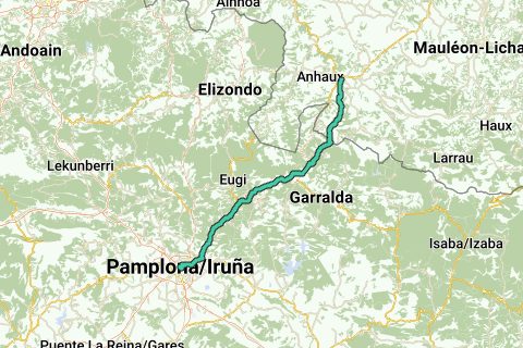 Variante VTT du sentier de pèlerinage Saint-Jacques allant de Saint-Jean-Pied-de-Port à Pampelune. Cet itinéraire fait partie du réseau des Caminos menant à Santiago de Compostella.