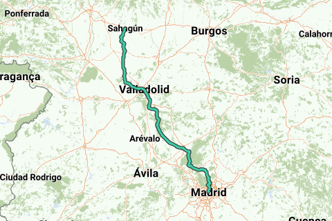 Variant de course de la route de pèlerinage Saint-James Camino de Madrid allant de Madrid à Sahagún en passant par Séville, Coca, Valladolid et Medina. Cet itinéraire se connecte également avec le chemin français qui mène à Santiago de Compostelle.