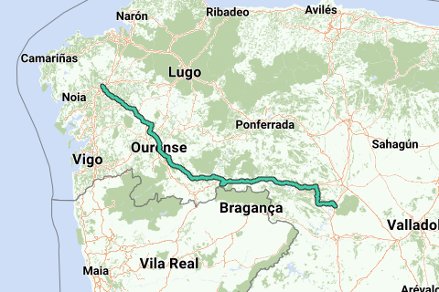 Itinéraire de randonnée des pèlerins de Saint-Jacques Camino Sanabres allant de Granja de Moreruela à Saint-Jacques-de-Compostelle en passant par Puebla de Sanabria, Ourense et Oseira.