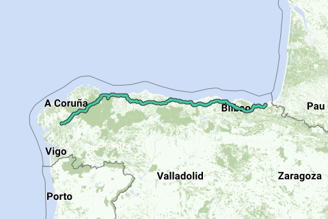 La N-634 qui va de Saint-Sébastien à Saint-Jacques-de-Compostelle est un must à faire à moto. Parfois, vous longerez la mer et à d'autres occasions, vous traverserez l'intérieur des terres. Elle traverse les communautés autonomes du Pays basque (Guipuscoa et Biscaye), de Cantabrie, des Asturies et de Galice (provinces de Lugo et La Corogne). Le trajet d'environ 15 km le long de la côte guipuscoane entre les villes de Zarauz et Zumaya est considéré comme le plus beau d'Espagne.