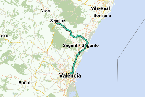 Trajet 11bis Alternatif València : Segorbe - Sagunt* - València 63 km