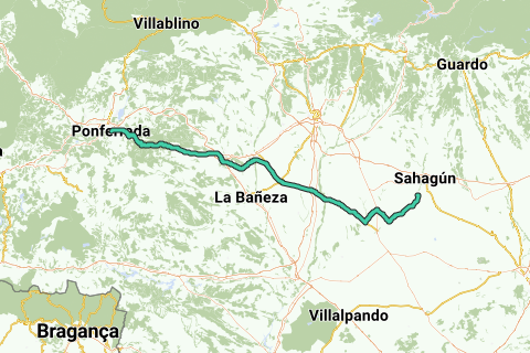 Au départ, c’est relativement plat et légèrement vallonné. Nous restons à une altitude d’environ 800 mètres. Jusqu'à Saelices de Mayorga, nous suivons en direction sud-ouest le ‘rio Cea’, puis nous continuons en zigzag vers Valencia de Don Juan où nous traversons le ‘rio Esla’. Nous poursuivons sur la CL 621, une route très droite, jusqu'à Santa Maria del Páramo (km 72). Ensuite, vous empruntez des routes sinueuses vers Astorga (km 110). Après avoir quitté Astorga, la montée commence progressivement puis devient plus raide jusqu'à atteindre une altitude de 1503 mètres. Oui, il y a donc encore une montagne.