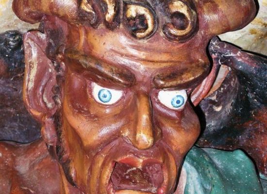 Dans l’église près de l’entrée se trouve une image du diable: Asmodée. Dans la Bible, il est crédité de 7 meurtres. Il était attiré par Sara, fille de Raguel. Il tue donc sept de ses maris potentiels lors de la nuit de noces. Asmodée est également dit être le gardien du trésor du temple souterrain de Salomon. C’est pourquoi les liens vers un trésor possible dans cette église font certainement appel à l’imagination.