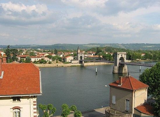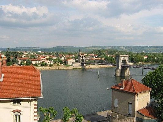 Avant la construction du pont en 1827, les habitants empruntaient un bac à traille pour traverser le Rhône.