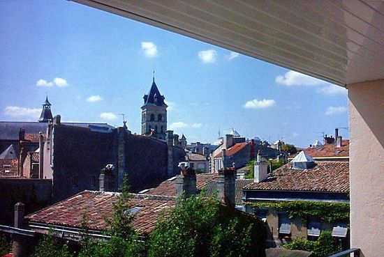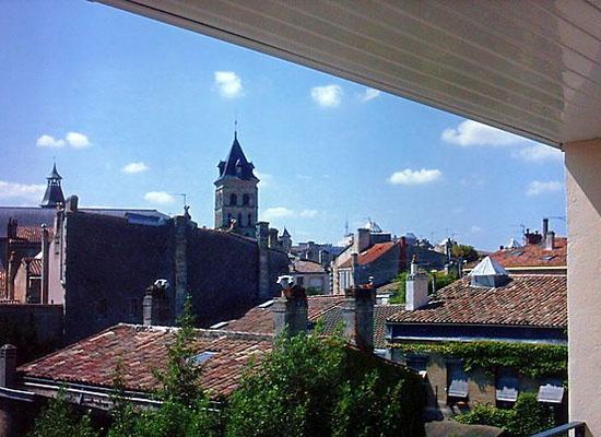 T3 dans demeure du XIXème siècle. 76 m². Etage. 2 chambres, 2 lits 2 personnes (160cm x 200cm). Séjour/espace salon, TV couleur, kitchenette, micro-ondes. Salle de bains. WC. Terrasse couverte, salon de jardin. En centre ville. Linge fourni.