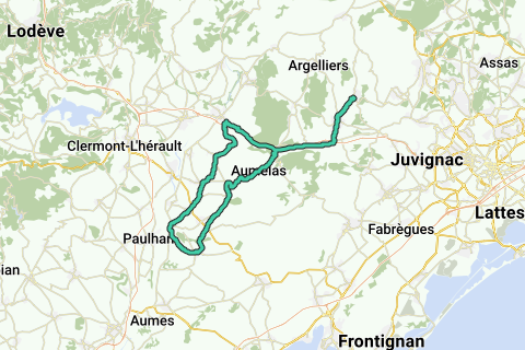 Vailhauquès, Montarnaud, St Paul, La Taillade, Gignac, St Bauzille, Le Pouget, Bélarga, Campagnan, St Pargoire, Vendémian, Aumelas, St Paul, Montarnaud, Vailhauquès.