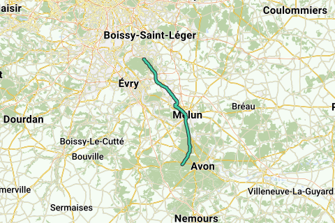 Route par la Nationale de la Pyramide de Brunoy au parking des gorges de Franchard (fontainebleau