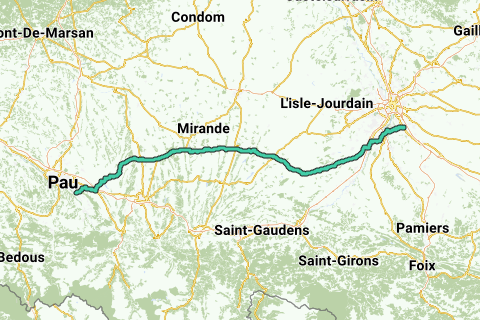 187 kms par Muret, L'isle en Dodon , Masseube, Mielan, Vic en Bigorre, Pontiacq, Seron, Soumoulou, Nousty