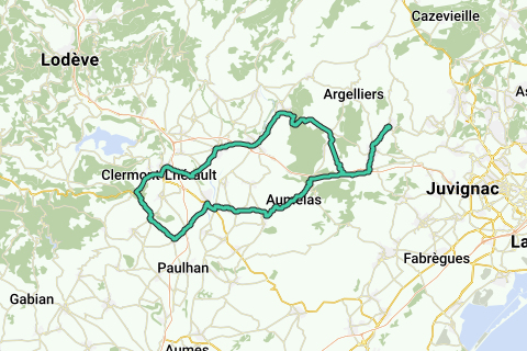 Vailhauquès, Montarnaud, St Paul, La Taillade, Aumelas, Le Pouget, Canet, Aspiran, Lieuran-Cabrières, Villeneuvette, Clermont l'Hérault, Brignac, St André, Gignac, Aniane, La Boissière, St Paul, Montarnaud, Vailhauquès