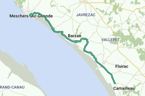<p><a class="routeYou_embed" href="https://app.routeyou.com/fr-fr/route/view/11532261?utm_source=embed&utm_medium=article&utm_campaign=routeshare&navigation=external" title="Meschers-sur-Gironde - Floirac - RouteYou" target="_blank"><img src="https://image.routeyou.com/embed/route/960x670/11532261-fr@2x.png" style="width: 100%; height: auto;" alt="Meschers-sur-Gironde - Floirac"></a></p>