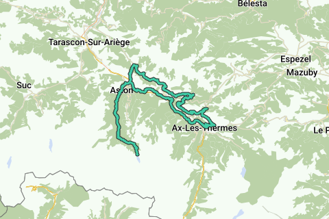 Les Cabannes - Ax les Thermes - Col de la Chioula - Axiat - Senconac - Barry d en haut - Les Cabannes - Plateau de Beille (15.5km) - Descente vers les Cabannes.