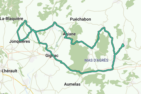 Vailhauquès, Montarnaud, St Paul et Valmalle, La Taillade, Gignac, Lagamas, Montpeyroux, Jonquières, St Saturnin, Arboras (Ravitaillement), Montpeyroux, St Jean de Fos, Aniane, La Boissière, Argelliers, Vailhauquès