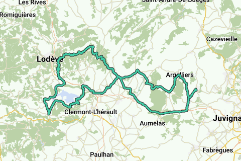Vailhauquès, Montarnaud, St Paul et Valmalle, La Taillade, Gignac, Lagamas, Montpeyroux, Jonquières, St Félix de Lodez, Rabieux, Mas Audran, barrage du Salagou, Liausson, Salasc, Octon, Cartels (Ravitaillement), Soumont, St Privat, route du Col du Vent, Arboras (Ravitaillement), Montpeyroux, St Jean de Fos, Aniane, La Boissière, Argelliers, Vailhauquès