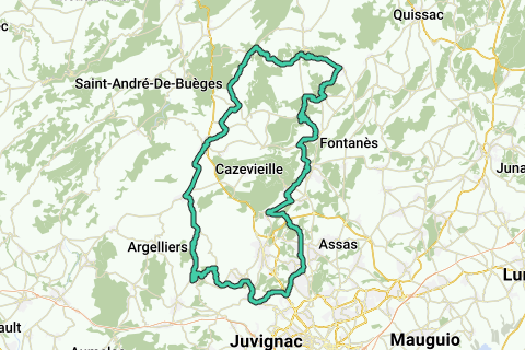 Vailhauquès, Mas de Perri, Grabels, St Clément, source du Lez, Les Matelles, St Mathieu, Valflaunès, côte de Valflaunès, Lauret, Mas Blanc, Claret, Ferrières les Verreries, Notre-Dame de Londres, St Martin, Viols le Fort, Saugras, Vailhauquès