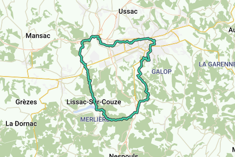 Grande boucle n°7 qui traverse les communes de Brive la Gaillarde, Noailles, Chasteaux, Lissac sur Couze, Saint Pantaléon de Larche, Varetz, Ussac.
