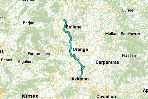 Après Lapalud, l’itinéraire sillonne la plaine agricole jusqu’au Canal de Donzère, puis se prolonge au pied de la forteresse de Mornas, jusqu'à Piolenc, près du plan d'eau baignable
