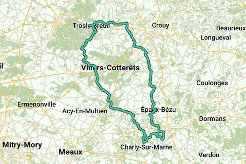 Parcours de 164 km - Pierrefonds - Donjon de Vez - Mareuil sur Ourcq