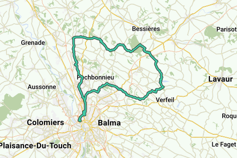Launaguet-Castelmaurou-Montpitot-Roquesérières-Forêt de Buzet-Retour par Montjoire - Vacquiers-Bouloc-Bruguières
