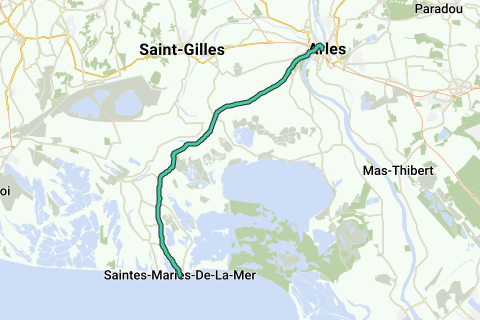 <p><a class="routeYou_embed" href="https://app.routeyou.com/fr-fr/route/view/240378?utm_source=embed&utm_medium=article&utm_campaign=routeshare&navigation=external" title="Arles -> Saintes Maries - RouteYou" target="_blank"><img src="https://image.routeyou.com/embed/route/960x670/240378-fr@2x.png" style="width: 100%; height: auto;" alt="Arles -> Saintes Maries"></a></p>