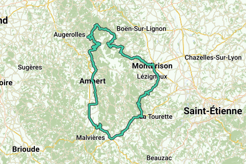 Départ Dore l'Eglise vers Craponne. Usson-en-Forez. Rejoindre route des Balcons direction Chalmazel, Cole de la Loge, Col de Béal. Retour Job et Ambert direction Arlanc.