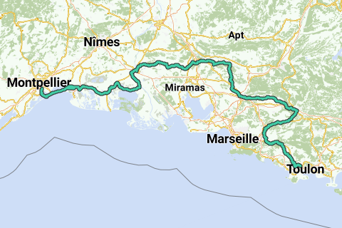 Depart de toulon vers montpellier sur les traces des jacquaires. En velo.