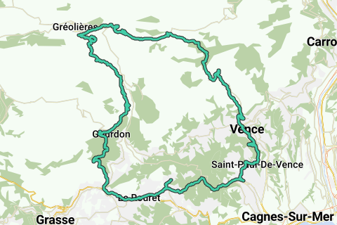Roquefort les pins, la colle, st paul, vence, col de vence, coursegoules, Gréolière, cipiere, gourdon, pré du lac, roquefort les pins.