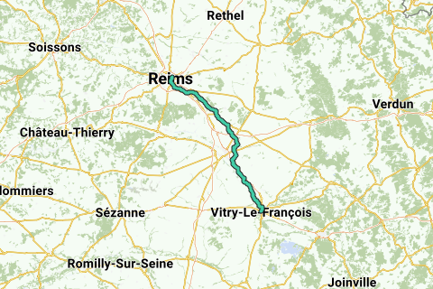 jonction entre reims et vitry. J'essaie d'élaborer un itinéraire vélo itinérant-camping, avec ma femme, de namur vers la vallée du doubs.