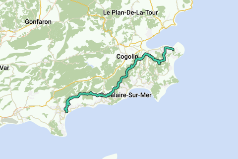 Depuis des années, retraité 72ans, avec un voisin allemand, bien plus jeune, en VTT je fais en été ce magnifique trajet sans voitures, aller et retour que sur les crêtes entre cap Bénat et Saint tropez, avec baignade devant St Tropez, avec un trajet modifié, évitant tout embouteillage sur les D559 et D61 et en évitant la Croix Valmer, en montant en plus en haut de Gassin, ce qui double le dénivelé, mais sans respirer la pollution des voitures en nombre excessif sur la côte en été noire de monde sur les plages et les routes carrossables !!