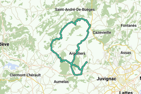 Vailhauquès, Montarnaud, St Paul, La Boissière, Aniane, St Guilhem, Le Causse de la Selle, Le Frouzet, St Martin, Viols le Fort, Les Matelettes, La Boissière, Croix de St Félix, Montarnaud, Vailhauquès