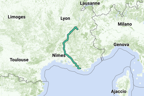 Vallée de l'Isère, puis vallée du Rhône pour enfin rejoindre Toulon par le plateau de la Sainte-Baume