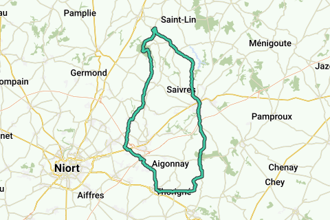 Verruyes - Plan d'eau du Lambon par St Maixent, retour par Mougon, Fressines, François et bois d'Arpentéreau