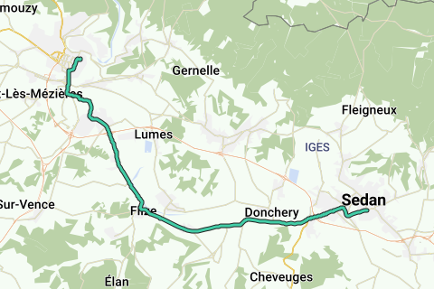 trajet approximatif Sedan-Charleville