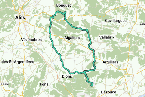 Poulx -Saint Chaptes- St Maurice de caz- Brouzet- Le Mont Bouquet - Seynes - Belvezet - Uzès - Poulx