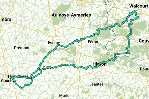 Une bonne petite virée de 270 Kms : vallée de l'Oise et ses églises fortifiées (après Guise),promenade dans la Thiérache), Abbaye de Scourmont (Trappe de Chimay - visite s'impose), le tour des lacs de l'Eau d'Heure (lac artificiel - vue panoramique) et retour par le Val joli (Lac avec station touristique), découverte de l'ouest de la Thiérache (spécialités maroilles vers Le Nouvion) puis regagner St Quentin à travers les plaines et l'autre rive de l'Oise. Ballade à faire très tranquillement et savourer les paysages (des curiosités à découvrir)