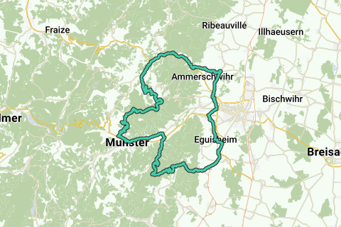 Van orbey via Kaysersberg lans Colmar naar beneden naar Eguisheim en via de Col du Firstplan naar Munster en zo de Hohrodberg op naar Orbey