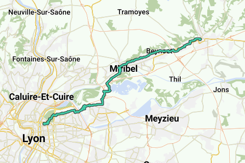 Partir de Lyon 6e en passant par le parc de laTete d'Or, sortir de Lyon passer par Beynost et arrivée à Montluel