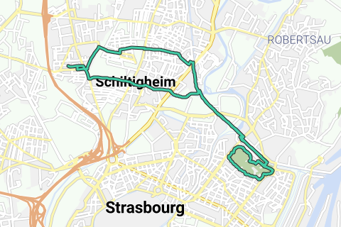 Entrainement course à pied 14km - Parcours 2 - Schiltigheim, Strasbourg l'orangerie.