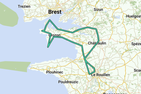 Départ Quimper -Chateaulin - Le Pont de Buis - Camaret et retour.