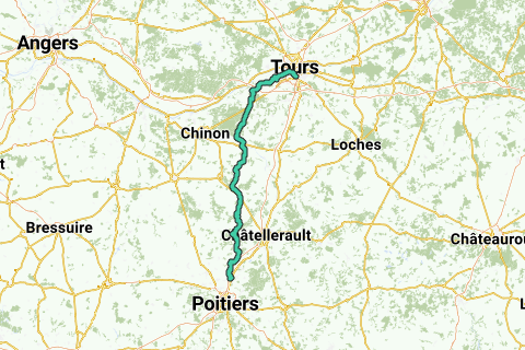 Longue Route plutôt plate. A faire en une journée si possible. Autrement, chercher un endroit pour se réposer en Camping près de Chinon