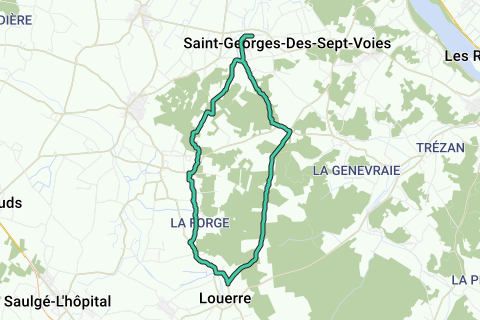 un mélange de chemins forestier, de départementales pour une boucle de 15,9 km par Louerre et Grézillé