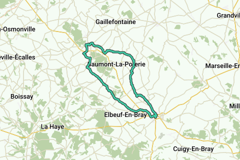 boucle d'environ 50 km avec pour points extrêmes Forges les Eaux et Gournay en Bray