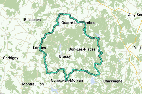 L'itinéraire vous mène le long des plus jolies routes à Morvan. Il y a peu de chances que vous croisiez beaucoup de voiture le long de cet itinéraire. Presque tout l'itinéraire est légèrement vallonné. Un itinéraire qui vous charmera à coup sûr. Les endroits où vous pouvez prendre un boisson ne sont pas trop nombreux, mais ils sont bien là.