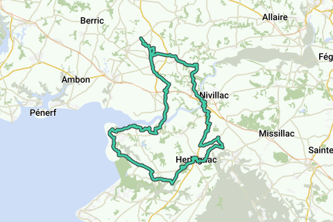 Par cet itinéraire vous roulez à vélo par La Roche Bernard (pont). Vous pouvez partir n'importe où le long du trajet. Vous vous intéressez de l'histoire? Alors cet itinéraire est quelque chose pour vous, car vous roulez à vélo le long d'un ancien château (Château de Ranrouët). Cet itinéraire est apte à chaque saison. L'eau de Vilaine (et aussi le paysage) paraît toujours différent.