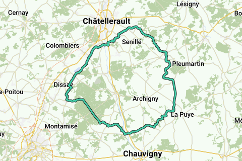 Presque tout l'itinéraire est légèrement vallonné. Il y a peu de chances que vous croisiez beaucoup de voiture le long de cet itinéraire. Descendez une fois et admirez le château le long de cet itinéraire (Château de Touffou). Arrêtez-vous une fois et méditez face à un monastère: Abbaye de l'Étoile Oiseaux qui sifflent, feuilles qui bruissent, humus qui sent ... et vous roulez à vélo et profitez dans le bois (Forêt de Moulière). Que demander de plus? Profitez et détendez vous à l'ombre d'arbres. Cet itinéraire passe un bois et est recommandé de faire en automne. Si les éléments ne sont pas contre vous, c'est une randonnée jolie. Cet itinéraire reçoit certainement 10 sur 10!