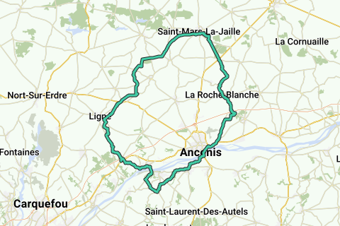 Celui qui aime des châteaux et leur histoire: faites une fois halte au château (Château d'Ancenis). Des jolies routes comme guide à travers de la nature. C'est un itinéraire à vélo le long de routes revêtues. Un itinéraire pour les chercheurs de la valeur ajoutée! Il y a une curiosité le long de cet itinéraire qu'il ne faut vraiment pas manquer: Folies Siffait. Cet itinéraire à vélo est faisable pour tout le monde et sera certainement goûté.