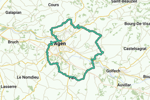 Cette randonnée à vélo à et autour de Agen vous donne une représentation fidèle de la ville et ses environs. Utilisez les transports publics pour atteindre cet itinéraire. Par cet itinéraire vous roulez à vélo par Pont-canal d'Agen (pont). Vous pouvez partir n'importe où le long du trajet. Il y a peu de chances que vous croisiez beaucoup de voiture le long de cet itinéraire. Presque tout l'itinéraire est légèrement vallonné. Lors de cet itinéraire vous roulez à vélo sur des routes revêtues. C'est un itinéraire lors duquel vous ne vous ennuierez certainement pas. Avant que vous poursuivez votre tour, arrêtez-vous certainement à Diocèse d'Agen. Vous ne vous ennuierez pas le long de cet itinéraire.