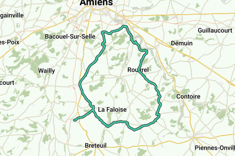 À Sains-en-Amiénois vous trouvez de nombreuses randonnées à vélo. Celle-ci est l'une d'entre elles. Quelques jolies routes et pistes cyclables à Grivesnes Descendez une fois et admirez le château le long de cet itinéraire (Château de Boves). Ce tour n'est certainement pas complètement plat. Admirez certainement les curiosités le long de cet itinéraire (e.a. Réserve naturelle de l'Étang Saint-Ladre). En résumé, vous envisagez une randonnée à vélo jolie.